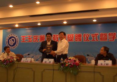 10月20日下午,中石化集團公司科技開發(fā)部副主任王玉慶教授受聘華東理工大學(xué)兼職教授受聘儀式暨學(xué)術(shù)報告會在逸夫樓演講廳隆重舉行。化工學(xué)院院長辛忠教授主持會議,副校長錢鋒教授、前副校長朱子彬教授及部分化工學(xué)院教師出席了受聘儀式,副校長錢鋒教授為王玉慶教授頒發(fā)了聘書和佩戴校徽。