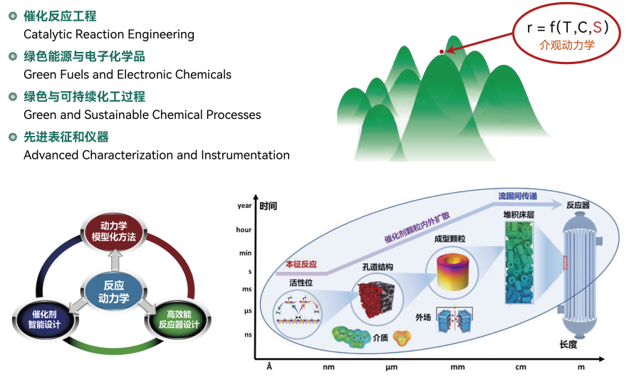 催化技術(shù)是現(xiàn)代化學(xué)工業(yè)的支柱,反應(yīng)動力學(xué)是工業(yè)催化劑與反應(yīng)器設(shè)計的重要基礎(chǔ)。面向國家重大需求和國際學(xué)術(shù)前沿,創(chuàng)新提出了催化劑主控尺度結(jié)構(gòu)的動力學(xué)辨認(rèn)及調(diào)控方法,首創(chuàng)定量描述催化劑介尺度結(jié)構(gòu)(活性位數(shù)目和微環(huán)境)與介尺度機(jī)制(吸附-活化態(tài)及分布)的介觀動力學(xué),指導(dǎo)高性能催化劑理性設(shè)計及精準(zhǔn)創(chuàng)制;提出了通過構(gòu)型匹配研究復(fù)雜催化體系產(chǎn)物選擇性調(diào)控的新思路,創(chuàng)新機(jī)理及數(shù)據(jù)驅(qū)動的加氫催化劑設(shè)計方法,實現(xiàn)目標(biāo)反應(yīng)路徑定向控制;建立了成型催化劑顆粒外形、孔結(jié)構(gòu)及床層堆積結(jié)構(gòu)的定量描述方法,實現(xiàn)對宏觀催化性能的準(zhǔn)確預(yù)測與優(yōu)化調(diào)控,指導(dǎo)高效能工業(yè)催化劑與反應(yīng)器設(shè)計開發(fā)。
