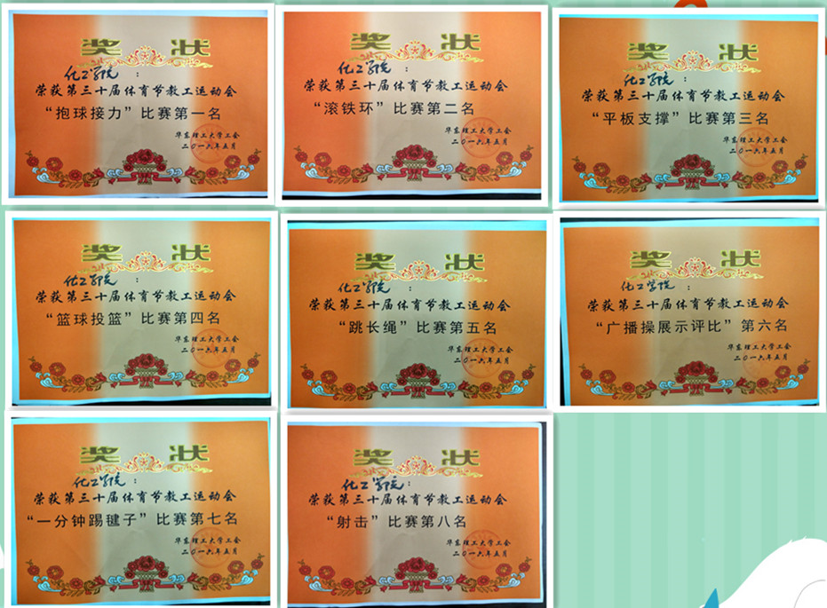 在5月6日舉行的華東理工大學(xué)第39屆體育節(jié)教工比賽中,我院榮獲團體總分第三名。我院教師參加了全部11個項目的比賽,其中8個項目進入了前八。充分展示了我院教師的風(fēng)采。