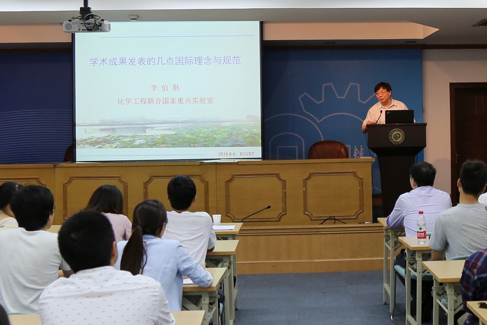 為引導(dǎo)青年教師刊發(fā)高質(zhì)量論文,啟發(fā)研究生論文寫作思想。6月6日下午化工學院特邀浙江大學*、工學部主任李伯耿教授來徐匯校區(qū)逸夫樓演講廳作了題為《學術(shù)成果發(fā)表的幾點國際理念與規(guī)范》的學術(shù)報告。報告會由化工學院院長趙玲老師主持,化工學院黨委書記李濤、黨委副書記高藝霞、化工學院副院長劉殿華、趙雙良等100余名師生共同聆聽了報告。