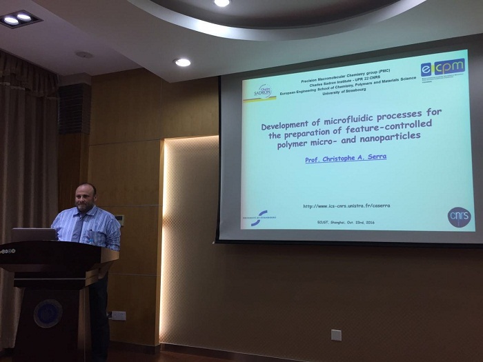 法國斯特拉斯堡大學(xué)(University of Strasbourg)的化學(xué)、聚合物和高分子歐洲工程學(xué)院的Christophe. A. Serra教授應(yīng)邀于2016年10月23日訪問我校,并在實(shí)驗(yàn)16樓106會議室作了題為“Development of microfluidic processes for the preparation of feature-controlled polymer micro- and nanoparticles”的學(xué)術(shù)報(bào)告。化工系主任吳艷陽老師主持了報(bào)告會。