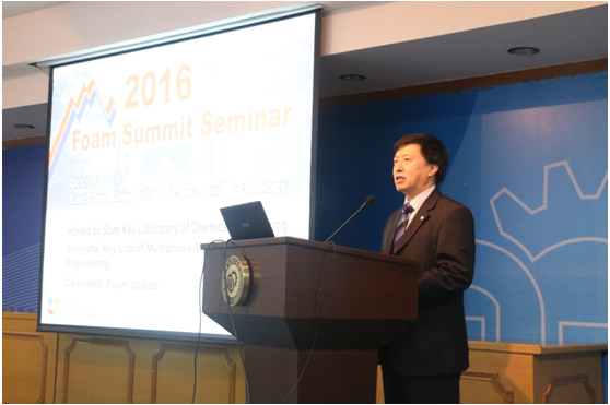 10月19日,由華東理工大學(xué)化學(xué)工程聯(lián)合國(guó)家重點(diǎn)實(shí)驗(yàn)室和上海市多相結(jié)構(gòu)材料化學(xué)工程點(diǎn)實(shí)驗(yàn)室(籌)主辦、Foam Update協(xié)辦,在我校逸夫樓演講廳召開了2016發(fā)泡高峰論壇研討會(huì),邀請(qǐng)了5位國(guó)際頂尖的聚合物發(fā)泡領(lǐng)域?qū)<曳窒硭麄兊某晒徒?jīng)驗(yàn)。我校副校長(zhǎng)劉昌勝教授代表學(xué)校向來自世界各地的專家學(xué)者表示熱烈歡迎。研討會(huì)由Foam Update的執(zhí)行主席S.-T. Lee博士和我校化工學(xué)院院長(zhǎng)趙玲教授主持。