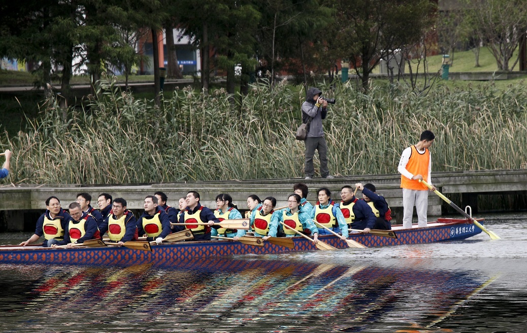 10月30日下午,奉賢校區(qū)通海湖畔旌旗飄揚、鑼鼓喧天、吶喊助威聲陣陣,第10屆“校慶杯”教工龍舟賽也在此拉開帷幕。經(jīng)過激烈的角逐,化工學(xué)院勇奪第五名。