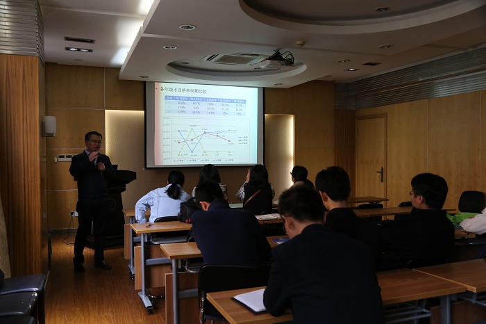 趙雙良首先介紹了此次會(huì)議的目的和要求,之后通報(bào)了學(xué)院本學(xué)期的學(xué)籍處理情況。通過(guò)對(duì)比分析近兩年來(lái)全校各專業(yè)的不及格率數(shù)據(jù),以及學(xué)院各年級(jí)的學(xué)籍處理情況,他從學(xué)生工作的角度分析了學(xué)院學(xué)風(fēng)建設(shè)目前取得的成績(jī)和存在的不足,并結(jié)合自身的帶班經(jīng)驗(yàn)對(duì)班導(dǎo)師和輔導(dǎo)員的工作提出了建議。