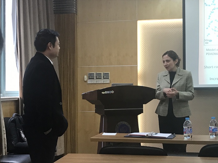 2016年11月10日上午9點(diǎn)實(shí)驗(yàn)十六樓110,土耳其海峽大學(xué)BasakKAYITMAZER教授應(yīng)化工學(xué)院郭旭虹教授,徐益升副教授邀請(qǐng),來(lái)我校徐匯校區(qū)交流訪問(wèn)并作了題目為”Complex Coacervation in Protein-Polyelectrolyte & Polyelectrolyte Polyelectrolyte systems”的學(xué)術(shù)報(bào)告。郭旭虹教授主持了主題報(bào)告會(huì),同時(shí)出席會(huì)議的還有化工學(xué)院王俊友副教授、許軍副教授、孫勝童博士等。