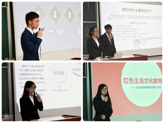 結(jié)項(xiàng)答辯現(xiàn)場(chǎng),有的團(tuán)隊(duì)如“專(zhuān)業(yè)在企業(yè)生產(chǎn)中的應(yīng)用”注重對(duì)企業(yè)轉(zhuǎn)型的探索,有的如“雨水資源化的模型優(yōu)化設(shè)計(jì)”側(cè)重對(duì)綠色智能的研究與優(yōu)化設(shè)計(jì),還有“紅色文化,長(zhǎng)征精神”等專(zhuān)注對(duì)革命精神、紅色文化的探討,專(zhuān)注中華民族傳統(tǒng)文化、建黨95周年、長(zhǎng)征勝利80周年的宣傳調(diào)研。經(jīng)過(guò)緊張熱烈的答辯,共評(píng)選出特等獎(jiǎng)兩個(gè),一等獎(jiǎng)三個(gè),二等獎(jiǎng)六個(gè)等若干。