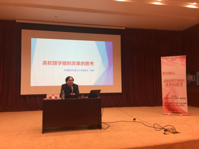 為加強(qiáng)團(tuán)學(xué)組織改革和學(xué)生干部隊(duì)伍建設(shè),12月2日下午,化工學(xué)院特邀請(qǐng)我校團(tuán)委書記倪煒做題為《高校團(tuán)校組織改革的思考》的主題講座。講座在奉賢校區(qū)敬賢堂舉行。學(xué)院全體團(tuán)學(xué)組織干部、班團(tuán)骨干出席。