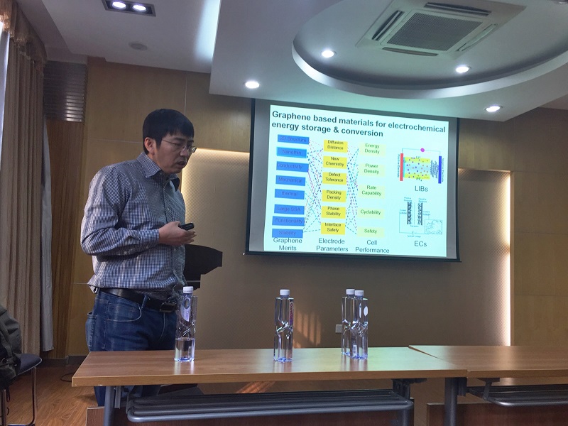 在講座中,李峰教授結(jié)合課題組已有工作成果,從基礎(chǔ)研究、材料研究到器件研究以及產(chǎn)業(yè)化發(fā)展,層層遞進(jìn),介紹了石墨烯與金屬氧化物的協(xié)同作用,石墨烯基材料在柔性電極等新型電池器件、以及鋰硫電池正極材料載硫中的應(yīng)用,以及電化學(xué)電位調(diào)控等幾個(gè)方面的內(nèi)容。他指出了石墨烯等新型炭材料在電化學(xué)能源存儲(chǔ)中的巨大價(jià)值和研究潛力,從材料學(xué)的機(jī)理,向老師和同學(xué)們展現(xiàn)了碳基材料在電化學(xué)中的魅力。講座現(xiàn)場(chǎng)座無(wú)虛席,李峰教授精彩的報(bào)告激發(fā)了老師和同學(xué)們對(duì)于電化學(xué)的更多方面的思考,報(bào)告后,他與師生們展開(kāi)了熱烈的討論。李峰教授對(duì)于科研的嚴(yán)謹(jǐn)作風(fēng)、深入淺出的講解、以及對(duì)學(xué)生和藹的態(tài)度,在同學(xué)們心中留下了深刻的印象。