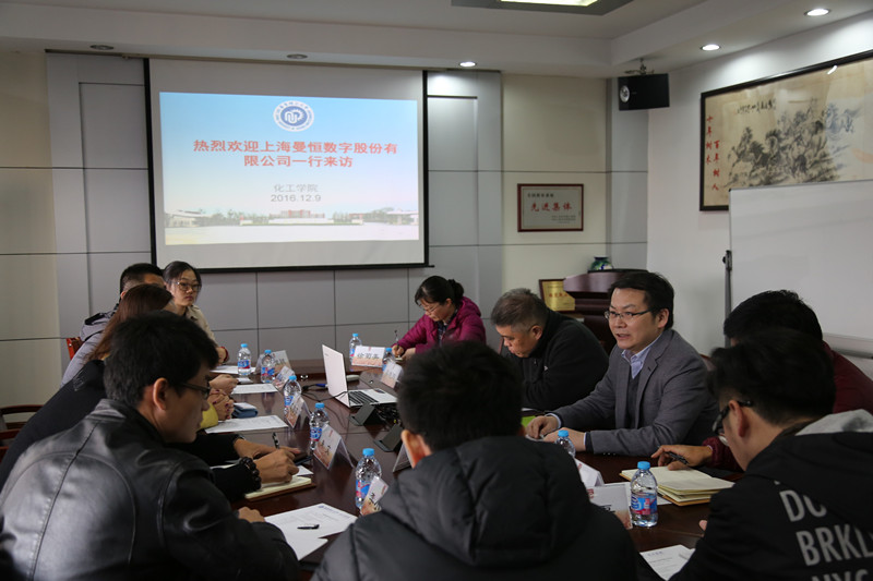 繼11月4日化工學(xué)院副院長(zhǎng)趙雙良帶隊(duì)考察上海曼恒數(shù)字技術(shù)有限公司后,12月9日,上海曼恒數(shù)字技術(shù)股份有限公司副總裁文桂芬等到化工學(xué)院進(jìn)行回訪,化工學(xué)院黨委書(shū)記李濤、副院長(zhǎng)趙雙良、院長(zhǎng)助理吳艷陽(yáng)、油氣儲(chǔ)運(yùn)專業(yè)系主任凌昊等出席了會(huì)議。