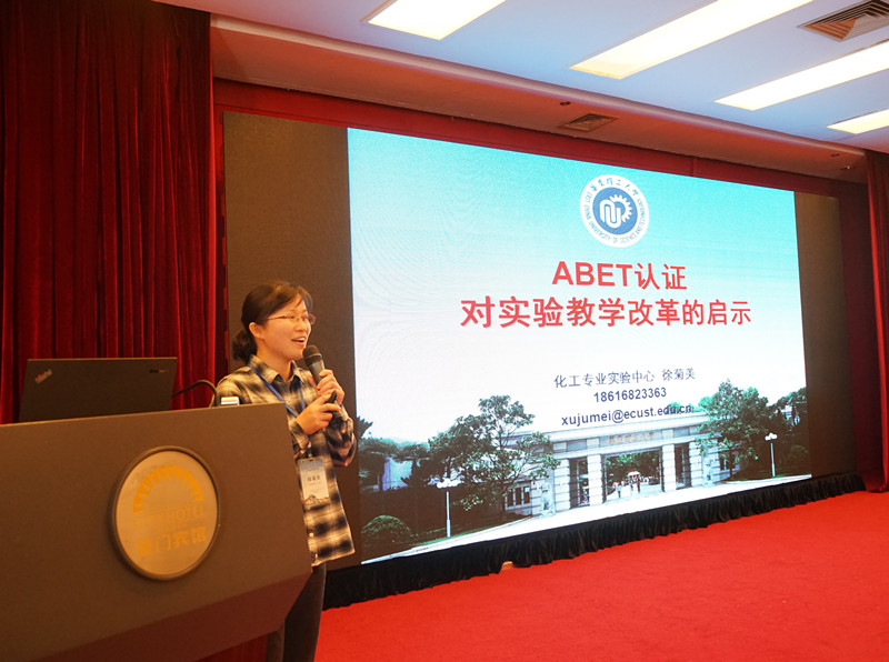 本次實(shí)驗(yàn)教學(xué)研討會(huì)邀請(qǐng)了香港科技大學(xué)、華東理工大學(xué)等11位專家做了精彩的專題報(bào)告,就“化工實(shí)驗(yàn)安全”、“創(chuàng)新實(shí)踐能力培養(yǎng)”、“工程專業(yè)認(rèn)證背景下的實(shí)驗(yàn)教學(xué)改革”、“化工虛擬仿真平臺(tái)建設(shè)”等主題展開(kāi)討論, 參會(huì)專家、教師和代表就化工實(shí)驗(yàn)教學(xué)方面的先進(jìn)經(jīng)驗(yàn)進(jìn)行了充分交流,進(jìn)一步明確了化工實(shí)驗(yàn)教學(xué)發(fā)展和改革方向。化工學(xué)院專業(yè)實(shí)驗(yàn)教學(xué)中心徐菊美老師作為代表參會(huì),并作大會(huì)報(bào)告“ABET認(rèn)證對(duì)實(shí)驗(yàn)教學(xué)改革的啟示”。