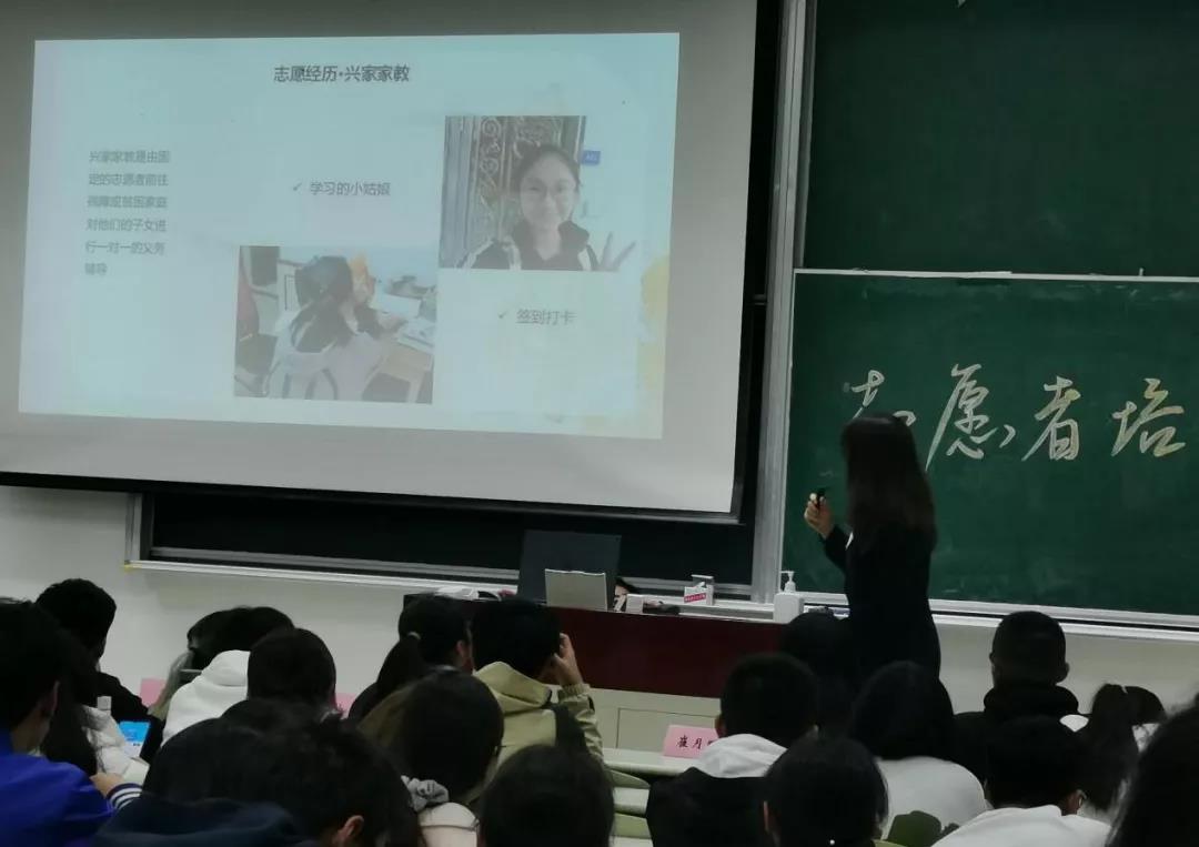 在優(yōu)秀志愿者分享環(huán)節(jié),2019年度校優(yōu)秀志愿者崔玥晗通過和同學(xué)們分享她在參加興家家教志愿活動(dòng)中的一些經(jīng)歷體驗(yàn),闡述了她在志愿過程中的心得與體會(huì),使同學(xué)們感受到了志愿服務(wù)獨(dú)特的魅力。
