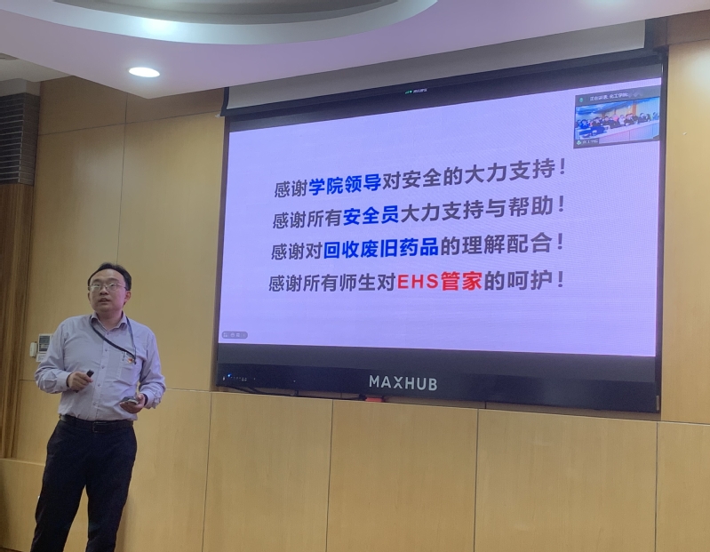 徐宏勇強(qiáng)調(diào),安全是立身之本。他首先回顧了三年來(lái)我校發(fā)生的實(shí)驗(yàn)室安全事故,以事故案例開(kāi)展警示教育,為參會(huì)師生黨員敲響安全警鐘。針對(duì)化學(xué)化工學(xué)科氣瓶和溶劑需求量大、分布區(qū)域廣等特點(diǎn),他主張依托HSE管家服務(wù)系統(tǒng),通過(guò)開(kāi)展危化品分類存儲(chǔ)、建立安全培訓(xùn)矩陣、加強(qiáng)個(gè)人防護(hù)等項(xiàng)目守護(hù)師生健康安全,筑牢實(shí)驗(yàn)室安全屏障,切實(shí)提升實(shí)驗(yàn)室安全管理水平。