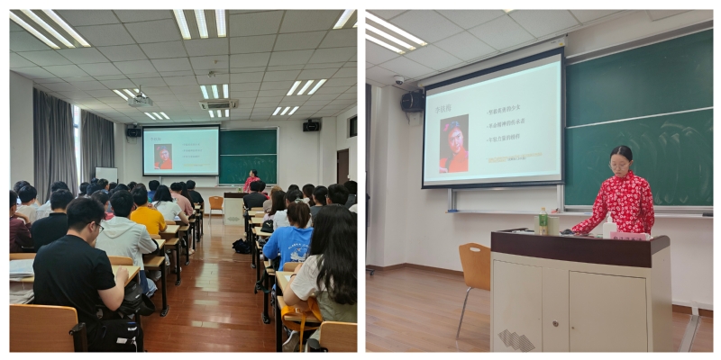 “開(kāi)天辟地光輝見(jiàn)。一百年,滄桑巨變換新顏。一百年,風(fēng)雨兼程勇向前……”何熙文用華理慶黨百年原創(chuàng)京歌《百年再啟航》中的經(jīng)典唱段開(kāi)始了本此講座。通過(guò)對(duì)京劇《婁山關(guān)》《平原作戰(zhàn)》《奇襲白虎團(tuán)》《江姐》等紅色經(jīng)典劇目片段的現(xiàn)場(chǎng)演繹和深入解讀,帶領(lǐng)同學(xué)們重溫了一個(gè)個(gè)感人至深的故事,生動(dòng)地詮釋了100年來(lái)共產(chǎn)黨人始終與人民同呼吸、共命運(yùn)、心連心,永遠(yuǎn)把人民對(duì)美好生活的向往作為奮斗目標(biāo)。