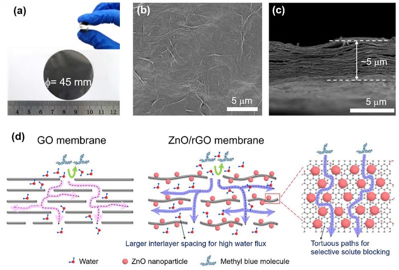 圖片說明:“高水通量-高截留率”的金屬氧化物/石墨烯納米復(fù)合材料納濾膜
