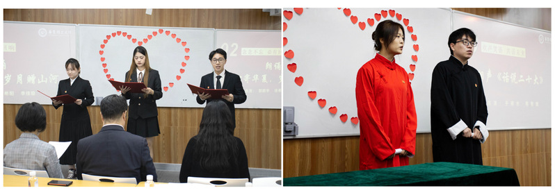 接著,三名本科生黨員郭鵬宇、徐希陽(yáng)和李佳璇進(jìn)行了題為《寸心寄華夏 歲月贈(zèng)山河》的金句朗誦,頌出青年學(xué)子對(duì)黨和祖國(guó)的深情告白。