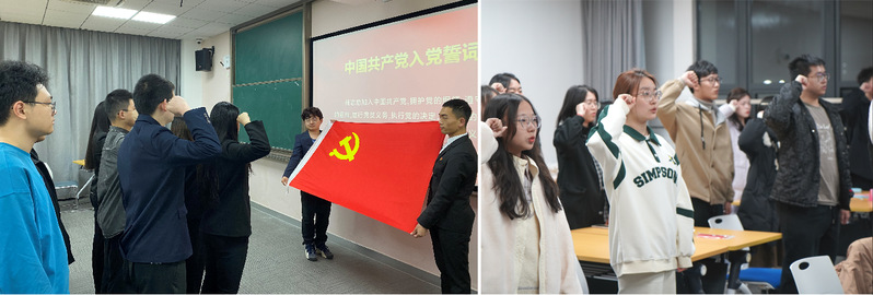 宣誓儀式在莊嚴(yán)雄壯的《國(guó)際歌》中拉開序幕,曹妙宣讀了奉賢校區(qū)新發(fā)展的黨員名單,并帶領(lǐng)全體黨員面向黨旗莊嚴(yán)宣誓。聲聲誓言,錚錚有力,字字千鈞,表達(dá)了每一名新黨員對(duì)黨的赤誠(chéng)忠心和為共產(chǎn)主義奮斗終身的堅(jiān)定決心,也鼓舞著現(xiàn)場(chǎng)的入黨積極分子。隨后,學(xué)生黨支部支委和黨小組組長(zhǎng)為新發(fā)展的黨員佩戴黨員徽章,并囑托他們牢記黨員身份,爭(zhēng)做堪當(dāng)民族復(fù)興重任的時(shí)代新人。
