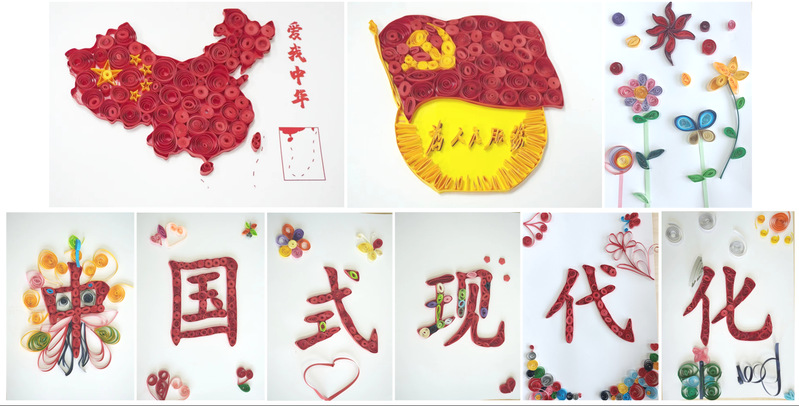 入黨宣誓儀式結(jié)束后,全體黨員和入黨積極分子用衍紙點(diǎn)亮入黨初心。他們將五顏六色的衍紙條進(jìn)行卷曲、彎曲和捏壓,親手制作出“中國(guó)共產(chǎn)黨黨徽”“中國(guó)地圖”圖案及“中國(guó)式現(xiàn)代化”字樣,并送上對(duì)黨和國(guó)家、對(duì)華理和化工學(xué)院的美好祝福。