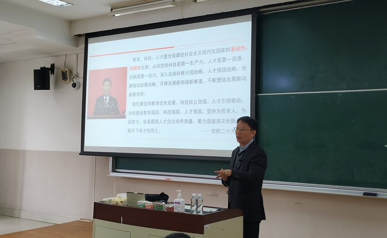 為深入學習宣傳貫徹習近平新時代中國特色社會主義思想和黨的二十大精神,全面推進新一輪本科教育教學審核評估工作,4月4日下午,化工學院在八教107室開展全體教職工理論學習,邀請法學院秦濤副教授和我院吳艷陽教授分別作了關于黨的二十大精神、本科教育教學的專題報告。會議由學院黨委書記朱學棟主持。