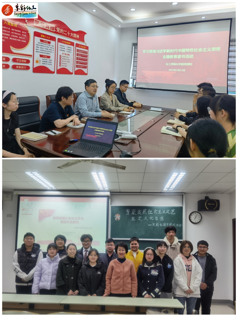 社團(tuán)活動(dòng)是思想政治教育的鮮活載體,化工學(xué)院積極探索思政元素融入社團(tuán)活動(dòng),促進(jìn)青年學(xué)生的全面發(fā)展。開學(xué)初,化工學(xué)院組織華韻京劇社開展主題為“繁榮發(fā)展社會(huì)主義文藝,堅(jiān)定文化自信”的學(xué)理論活動(dòng)。社團(tuán)骨干研究生黨員陳曉峰領(lǐng)學(xué)黨的二十大精神,他以青年的視角從“花雅之爭(zhēng)”談到文化自信,號(hào)召同學(xué)們以高度的歷史使命感,傳承優(yōu)秀傳統(tǒng)文化。石子荀同學(xué)通過(guò)表演現(xiàn)代京劇《紅燈記》選段,分享從戲曲中學(xué)到的革命精神。學(xué)院黨委副書記高藝霞寄語(yǔ)社團(tuán),勉勵(lì)同學(xué)們將藝術(shù)愛(ài)好融入校園文化生活,豐富傳統(tǒng)文化涵養(yǎng)提升審美情趣,促進(jìn)身心發(fā)展。學(xué)院黨委書記朱學(xué)棟參加學(xué)生黨支部與京劇社聯(lián)合讀書活動(dòng),鼓勵(lì)同學(xué)們廣泛閱讀從中華文化中汲取智慧力量。