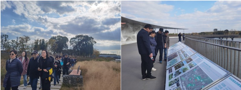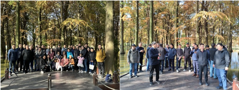 秋游第一站,大家來到了上海市青浦區(qū)金澤鎮(zhèn)的青西郊野公園,它是上海唯一一個(gè)以濕地為特色的郊野公園。園內(nèi)物種資源豐富,“湖、灘、蕩、島”縱橫交錯(cuò),濕地、湖泊、河流、森林形成多樣化的生態(tài)系統(tǒng)。走進(jìn)生態(tài)保育功能區(qū)“水上森林”,秋日的水杉、池杉、落羽杉枝頭盡染,風(fēng)景如畫,不禁引人駐足欣賞。