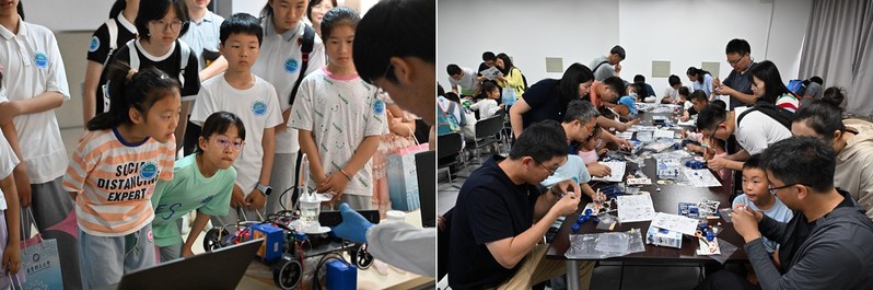 在中心展示廳,Chem-E-Car團(tuán)隊(duì)成員用視頻回顧了科創(chuàng)競(jìng)賽經(jīng)歷,現(xiàn)場(chǎng)還展示了化學(xué)賽車以及控制反應(yīng)的實(shí)驗(yàn)過(guò)程,激發(fā)了學(xué)生們對(duì)科學(xué)實(shí)驗(yàn)的熱情。本次活動(dòng)的高潮是搭建玩具小車并用鹽水驅(qū)動(dòng)的環(huán)節(jié),讓大家在實(shí)踐中享受科學(xué)帶來(lái)的樂(lè)趣。