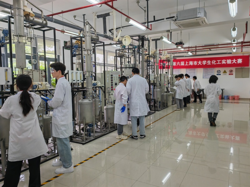 圖片說明:參賽選手在奉賢實(shí)驗(yàn)7樓的化工原理實(shí)驗(yàn)競(jìng)賽現(xiàn)場(chǎng)