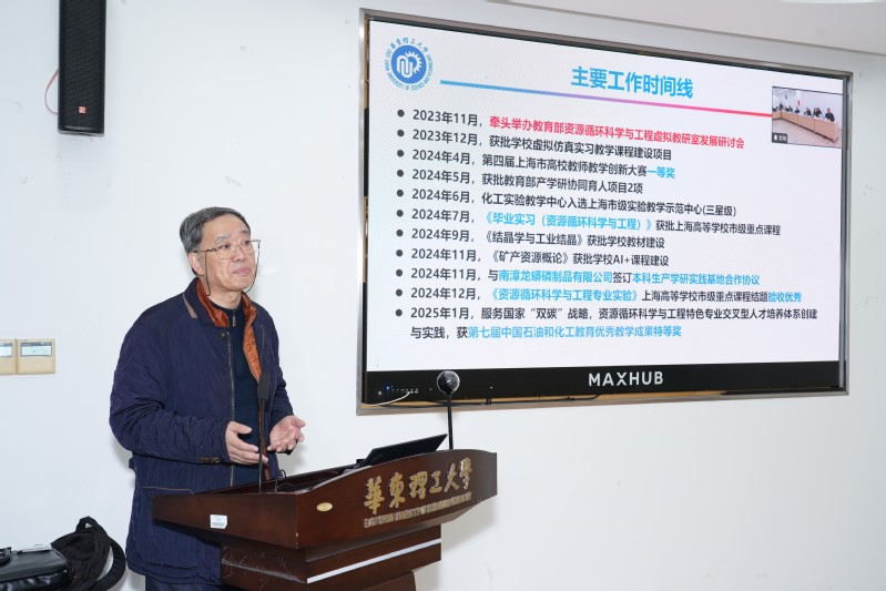 郝長江對資源循環(huán)科學(xué)與工程專業(yè)的發(fā)展表達(dá)了祝福與希望,專業(yè)責(zé)任教授于建國作了“華東理工大學(xué)資源循環(huán)科學(xué)與工程專業(yè)2024年發(fā)展?fàn)顩r”報(bào)告,回顧了2024年資源循環(huán)科學(xué)與工程專業(yè)的課程、教材及人才隊(duì)伍的建設(shè)情況和取得的重要成果。青年教師顧帥、陳杭和劉程琳副教授分別對“資源循環(huán)過程基本原理課程”“資源循環(huán)過程人工智能輔助開發(fā)”“資源循環(huán)科學(xué)與工程專業(yè)實(shí)驗(yàn)”課程建設(shè)及2025級資源循環(huán)科學(xué)與工程專業(yè)培養(yǎng)方案修訂情況進(jìn)行了詳細(xì)匯報(bào)。