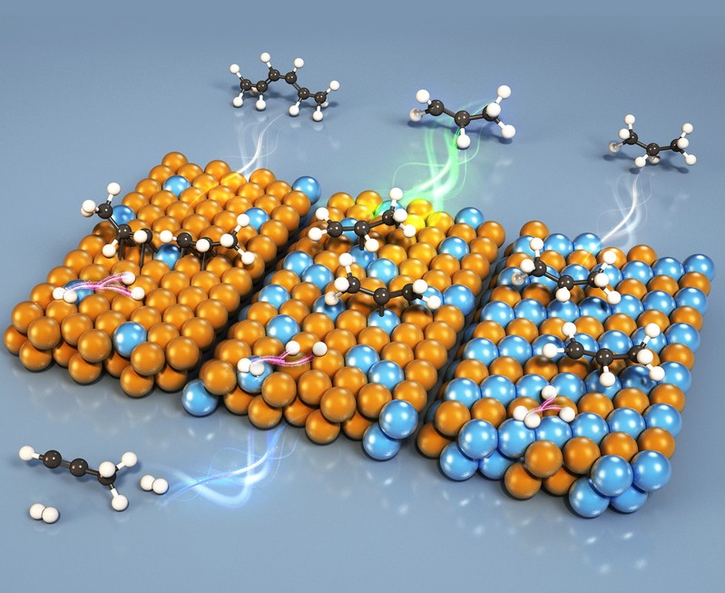 多相催化加氫技術(shù)廣泛應(yīng)用于大宗化學(xué)品和精細化學(xué)品的生產(chǎn)。然而,由于反應(yīng)物/中間體不利的構(gòu)型往往導(dǎo)致反應(yīng)路徑調(diào)控困難,制約了高效加氫催化劑的設(shè)計。近年來,隨著先進表征技術(shù)與理論模擬方法的協(xié)同發(fā)展,研究者逐漸認識到通過原子級精準調(diào)控活性位點的配位微環(huán)境,可實現(xiàn)對反應(yīng)物吸附構(gòu)型及加氫路徑的定向調(diào)控,這為突破傳統(tǒng)催化劑的性能瓶頸提供了新思路。丙炔加氫是制備聚合級丙烯過程的關(guān)鍵,其復(fù)雜的串并聯(lián)反應(yīng)網(wǎng)絡(luò)涉及目標產(chǎn)物丙烯的生成、過度加氫副產(chǎn)物丙烷的形成以及偶聯(lián)反應(yīng)生成綠油前驅(qū)體等多個競爭路徑。Cu催化劑雖可避免過度加氫,但因氫氣活化能力弱,易引發(fā)偶聯(lián)副反應(yīng);而Pd基催化劑雖活性高,卻因丙烯吸附過強導(dǎo)致選擇性不足。如何通過調(diào)控催化劑活性位點結(jié)構(gòu),平衡氫氣活化與丙烯脫附,是提升催化性能的核心難題。
