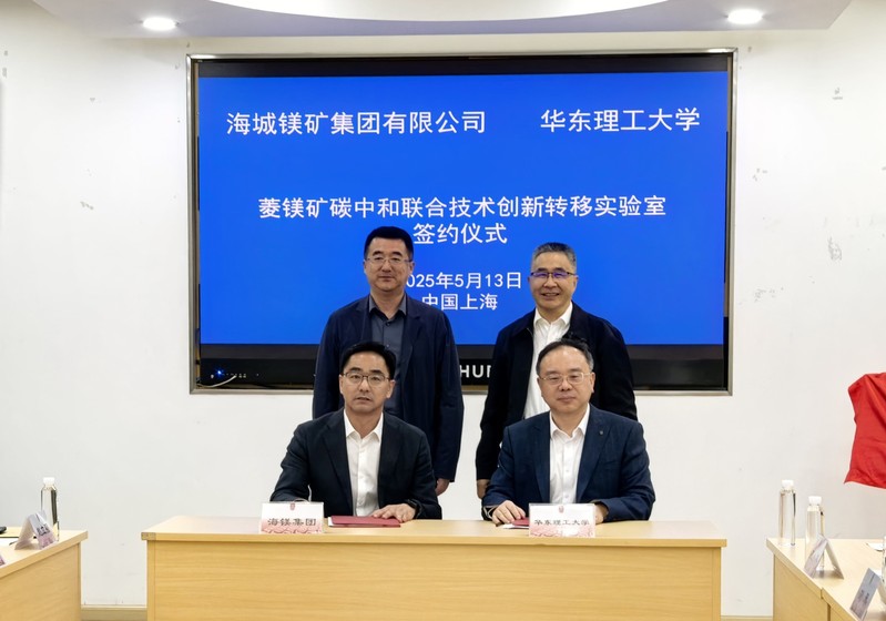 在雙方共同見證下,我校化工學院劉殿華教授與海鎂集團總經(jīng)理趙立強代表雙方簽署聯(lián)合實驗室合作協(xié)議。閻海峰與陸薦援共同為實驗室揭牌,標志著雙方在菱鎂礦CO?捕集制甲醇等關(guān)鍵技術(shù)領(lǐng)域的合作正式啟動。