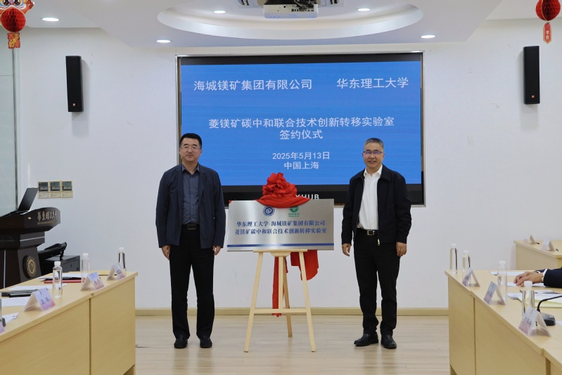 5月13日,華東理工大學-海城鎂礦集團有限公司菱鎂礦碳中和聯(lián)合技術(shù)創(chuàng)新轉(zhuǎn)移實驗室揭牌儀式在校舉行。鞍山市委常委、海城市委書記陸薦援,華東理工大學黨委常委、副校長閻海峰出席簽約儀式。儀式由化工學院黨委書記段學志主持。