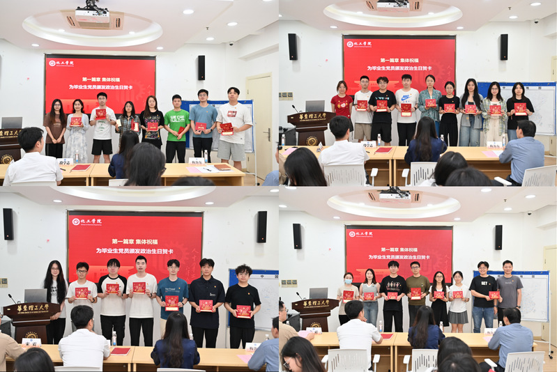 孫莉為4名本科生黨支部書記頒發(fā)政治生日賀卡,各黨支部書記接力傳遞祝福;現(xiàn)場還隨機抽取了6名黨員的入黨志愿書,并截取“入黨志愿”片段,喚醒黨員入黨初心。