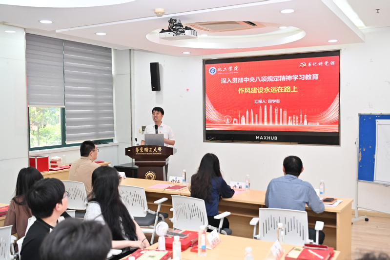 為扎實開展深入貫徹中央八項規(guī)定精神學習教育,切實做好畢業(yè)生黨員離校教育,6月16日上午,化工學院以“重溫入黨初心 點亮紅色坐標”為主題,在徐匯校區(qū)實驗十六樓108室舉行2025屆畢業(yè)生黨員集體“政治生日”儀式,以紅色賦能人生新征程。活動由憶初心、亮坐標、啟新程三個環(huán)節(jié)組成。化工學院黨委書記段學志、黨委副書記兼紀委書記孫莉、副院長宋震、專職組織員梅海東以及全體本科畢業(yè)生黨員參加。活動由學院輔導員曹妙主持。