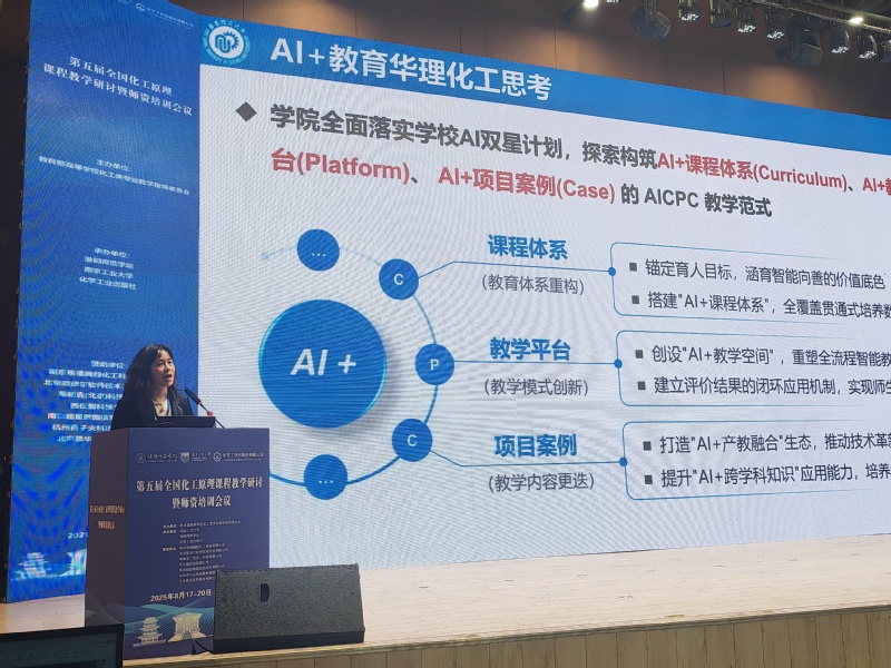 本屆會(huì)議以“AI背景下的化工原理教學(xué)改革”為核心主題,匯聚了來(lái)自清華大學(xué)、天津大學(xué)、四川大學(xué)、南京工業(yè)大學(xué)及我校等全國(guó)60余所高校的專(zhuān)家學(xué)者。南京工業(yè)大學(xué)管?chē)?guó)鋒教授、廈門(mén)大學(xué)李清彪教授、清華大學(xué)余立新教授、南京理工大學(xué)鐘秦教授、天津大學(xué)夏淑倩教授等多位專(zhuān)家作專(zhuān)題報(bào)告。我校化工學(xué)院副院長(zhǎng)吳艷陽(yáng)教授在會(huì)上作了題為“人工智能賦能‘化工原理’一流課程建設(shè)的路徑探索”的特邀報(bào)告,系統(tǒng)介紹了我校在化工原理課程中引入AI技術(shù)、推動(dòng)教學(xué)數(shù)字化轉(zhuǎn)型的先進(jìn)經(jīng)驗(yàn)與創(chuàng)新成果,展示了我校在一流課程建設(shè)與工程教育改革方面的引領(lǐng)性工作,引發(fā)與會(huì)代表的廣泛關(guān)注和熱烈討論。